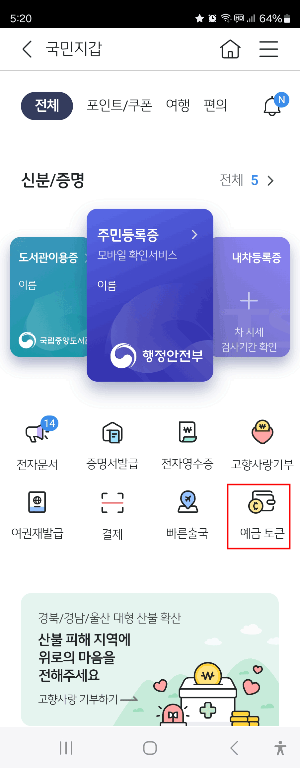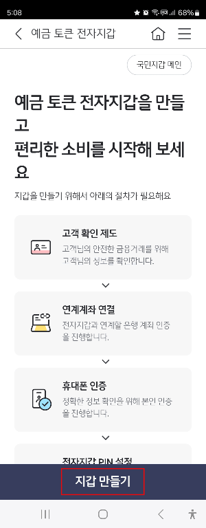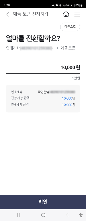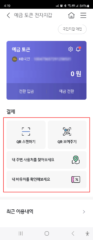 완료되면 국민지갑 메인화면에 예금 토큰이라는 메뉴가 생깁니다.