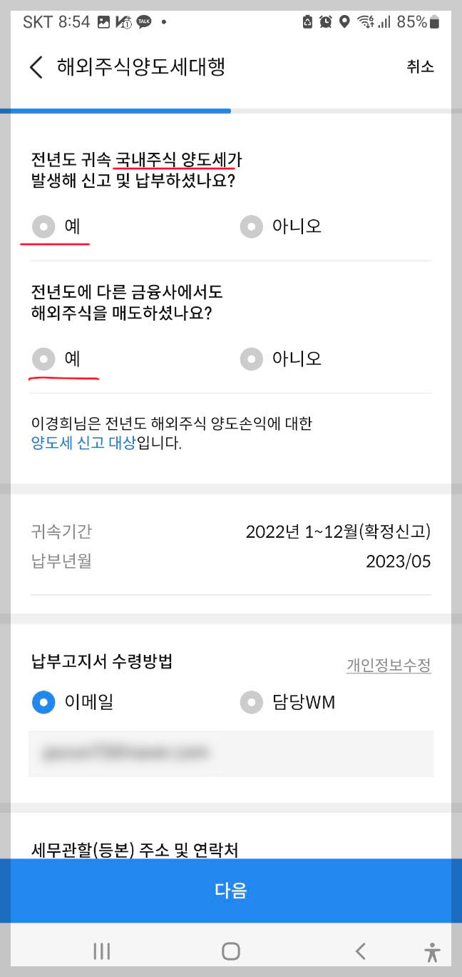 이 부분에서 2022년도 국내주식 양도세 신고분이 있는지, 타 금융사에 해외주식 매도가 있는지 꼭 체크하셔야 합니다.